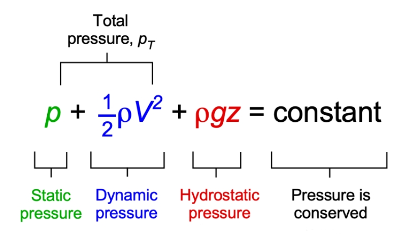 - Static Pressure (P) – the fluid’s potential energy